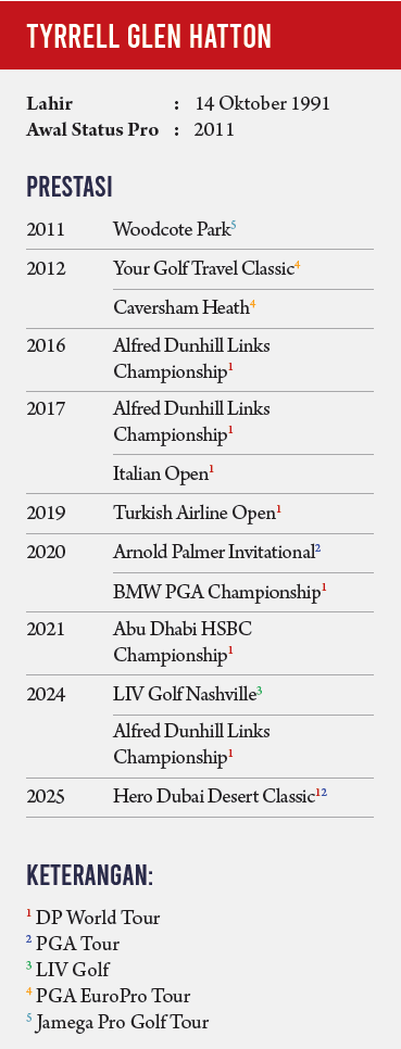 Januari kemarin, Hatton menjuarai Dubai Desert Classic 2025. Keberhasilannya di Emirates Golf Club itu membuka berbagai fakta pada Hatton.